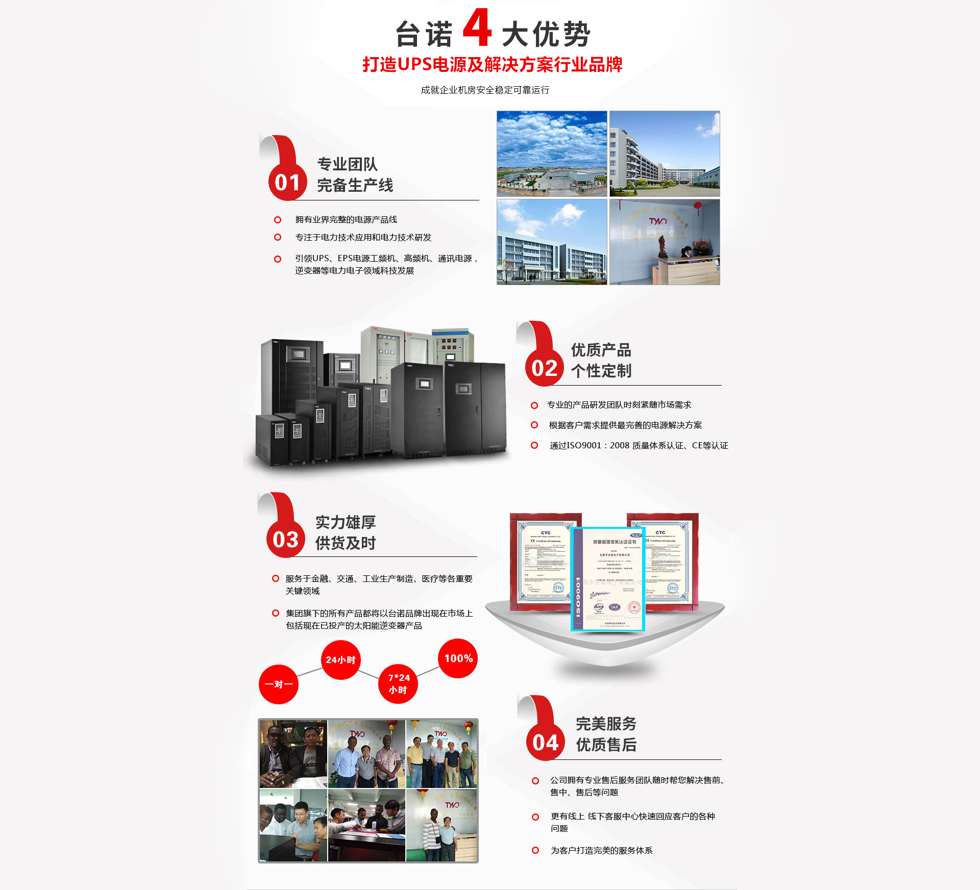 東莞市臺諾電子有限公司是一家以新能源、UPS不間斷電源、EPS應(yīng)急電源、交直流穩(wěn)壓電源、鉛酸免維護(hù)蓄電池、智能變頻電源、智能開關(guān)電源、智能一體化逆變電源、智能電源監(jiān)控系統(tǒng)的研究、開發(fā)、生產(chǎn)、經(jīng)營、銷售及技術(shù)推廣等多行業(yè)發(fā)展高新企業(yè)。公司位于東莞市毗鄰中國南方經(jīng)濟(jì)重地廣州、深圳,交通發(fā)達(dá),信息暢通。系廣東重點(diǎn)高新技術(shù)企業(yè)、東莞市創(chuàng)新型企業(yè)、也是中國電源協(xié)會、廣東省材料與器件產(chǎn)業(yè)技術(shù)創(chuàng)新戰(zhàn)略聯(lián)盟、 東莞市臺諾電子有限公司隸屬于臺諾集團(tuán),是一家有多年UPS集設(shè)計(jì)研發(fā)、生產(chǎn)銷售、售后服務(wù)為一體的公司,擁有業(yè)界完整的電源產(chǎn)品線,專注于電力技術(shù)應(yīng)用和電力技術(shù)研發(fā)。公司致力于向全球客戶提供性能好、品質(zhì)好的產(chǎn)品與服務(wù)。UPS、EPS電源工頻機(jī)、高頻機(jī)、通訊電源、光伏、逆變器等電力電子領(lǐng)域科技發(fā)展,創(chuàng)造可靠、節(jié)能的產(chǎn)品,致力于為客戶提供完善的電源解決方案。產(chǎn)品廣泛應(yīng)用于政府、金融、通信、教育、交通、氣象、廣播電視、工商...